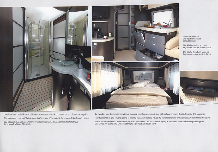 L'intérieur, on aime ou on aime pas...Moi, j'adore! la teinte, le dessus de la cuisine en résine (la teinte des portes de la cuisine peut être étaient elles à revoir?) la gigantesque douche avec cette conception des wc et douche donnant la possibilité une fois fermé les deux portes, de se croire comme à la maison, ce qui ma plus sur notre RX actuel, nous nous sentons à l'aise! En revanche, je ne vois pas de lanterneau, ni dans la douche et ni au niveau des wc par contre il y a une fenêtre dans les wc et une espèce de VMC dans la douche.