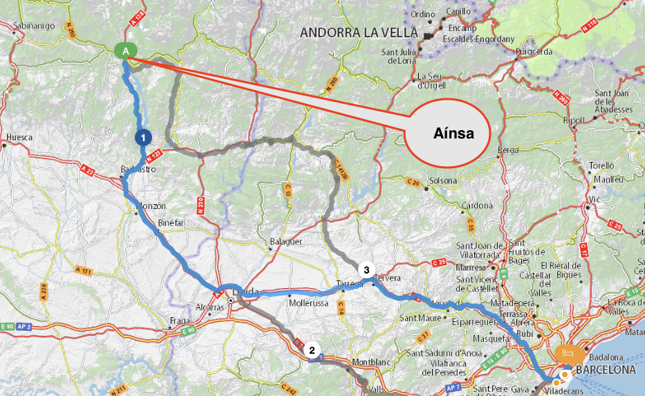 AÍNSA à environ 300 kms au nord de Barcelona.